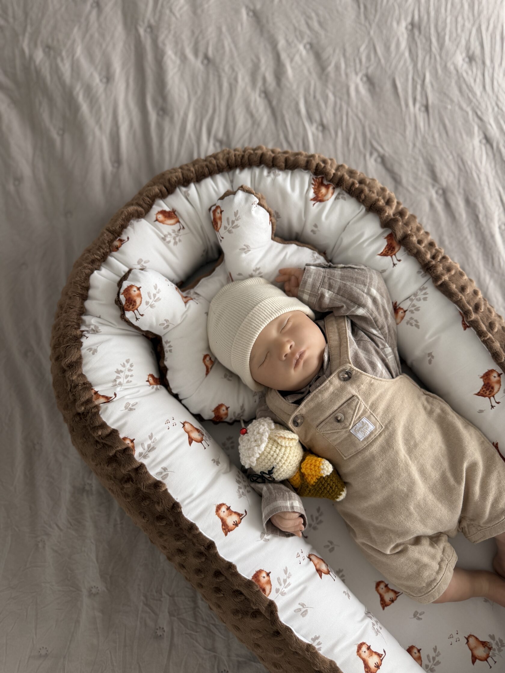 Je vous présente un de mes cocons . Cette collection convient à ceux qui veulent offrir un cadeau de naissance unique à leur enfant, aux connaisseurs d'objets exclusifs faits à la main et aux enfants qui ont des allergies ou des problèmes de peau. Le tissu lisse donne une agréable fraîcheur dans la chaleur, et en hiver - retient parfaitement la chaleur. Le percale premium 100% fibre de coton est idéal pour les bébés à la peau sensible, c'est pourquoi ce matériau est utilisé pour coudre la literie des enfants, les oreillers et les couvertures. Un tel cocon, vous ne l'achèterez dans aucun magasin. La collection est limitée !