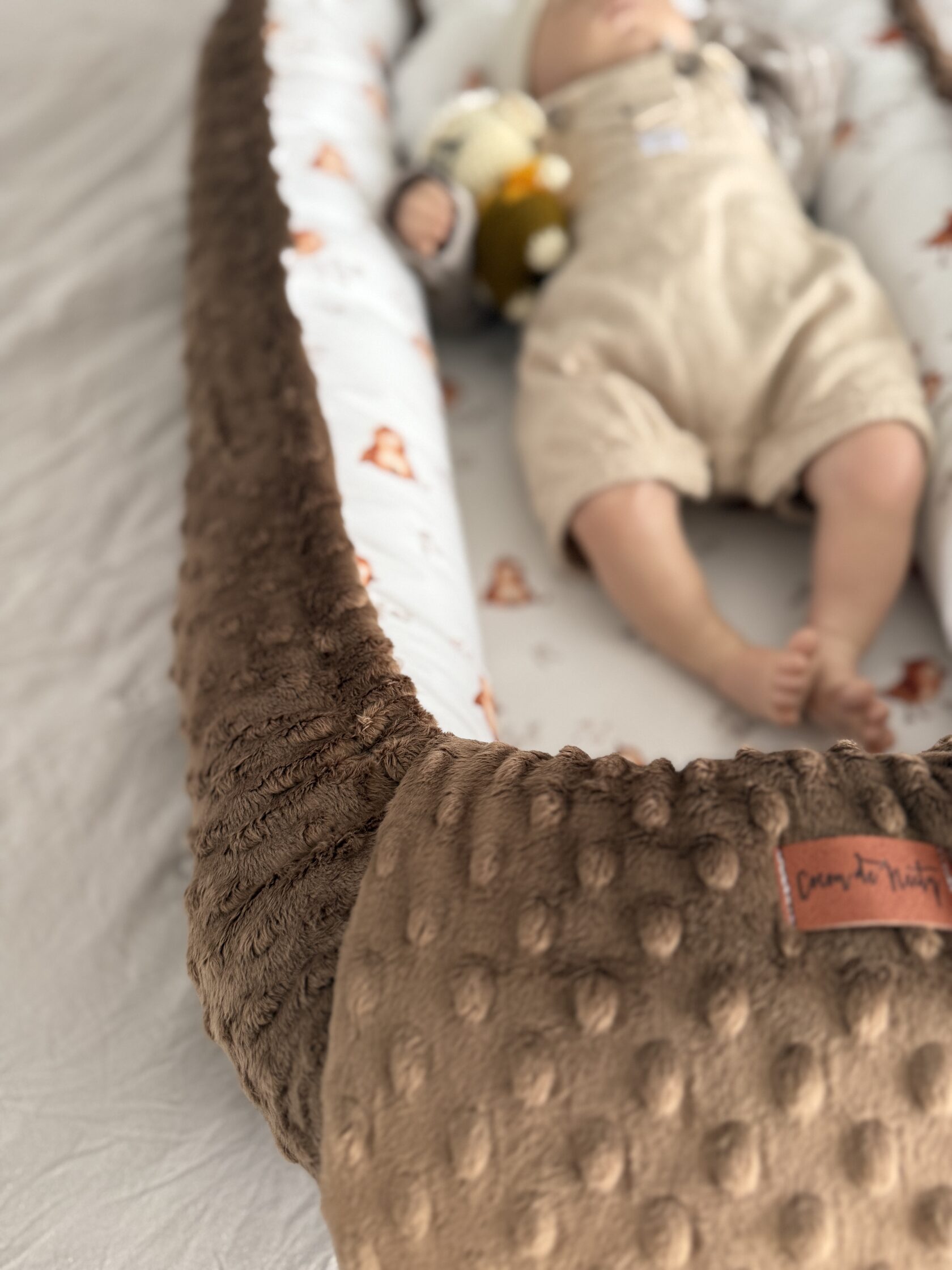 Un cocon avec un coussin et noeud Usages multiples - le cocon peut être utilisé comme lit de bébé, il facilite le placement du bébé sur le côté ; il peut être placé dans le lit des parents, les côtés sécurisés protègent le bébé de l'écrasement ; il peut être également placé dans la poussette et amortit parfaitement tous les chocs ; il peut être utilisé comme couffin dans n'importe quel endroit - sur le canapé, au sol et comme berceau lors de voyages. Adaptable à la taille du bébé, réversible - le cocon grandit avec l'enfant. Grâce au ruban cousu, la longueur et la largeur du cocon peuvent être ajustées librement. Le cocon est réversible, ce qui permet de changer son apparence. Coton 100 % et anti-allergique - Fait de coton 100 % de qualité supérieure. A l'intérieur, il est garni d'un textile non-tissé polyester anti-allergique, aéré et respirant dont les propriétés ne sont pas altérées lors de lavages répétés.
